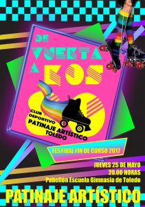 A tan solo un día, el CLUB DEPORTIVO PATINAJE ARTÍSTICO DE TOLEDO, realizará su cierre de temporada escolar, con el festival fin de curso 2017 donde nos acompañarán diferentes asociaciones y colegios para disfrutar de una hora y media de patinaje artístico.