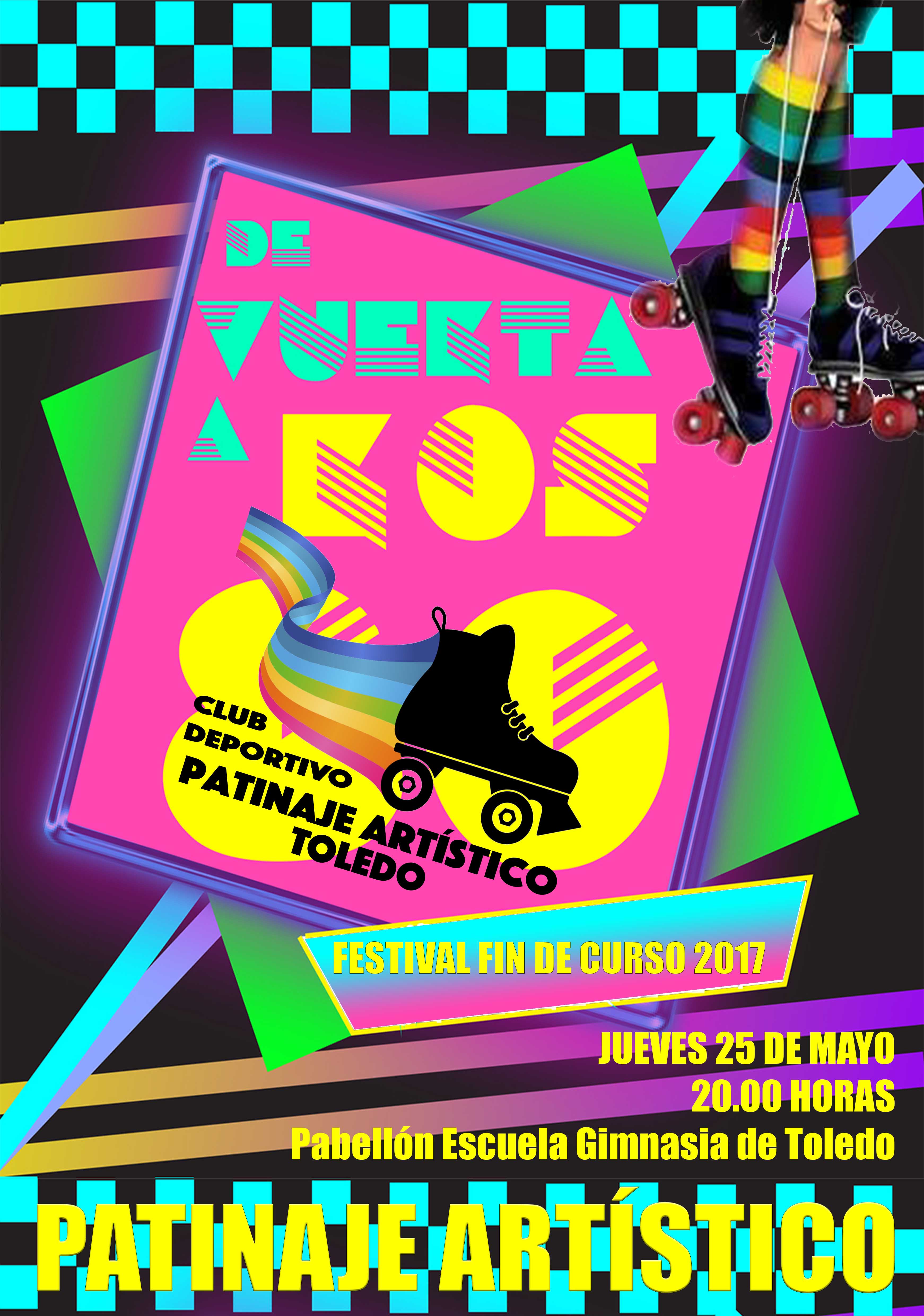 Todos los patinadores de los grupos de nuestro club, nos representarán la coreografía de los años 80, en la que llenarán de colorido el pabellón de la Escuela de Gimnasia el próximo jueves día 25 de mayo en horario de 20.00 a 21.30 horas, en el que patinarán también nuestras patinadoras Campeonas de Castilla la Mancha en la presente temporada.